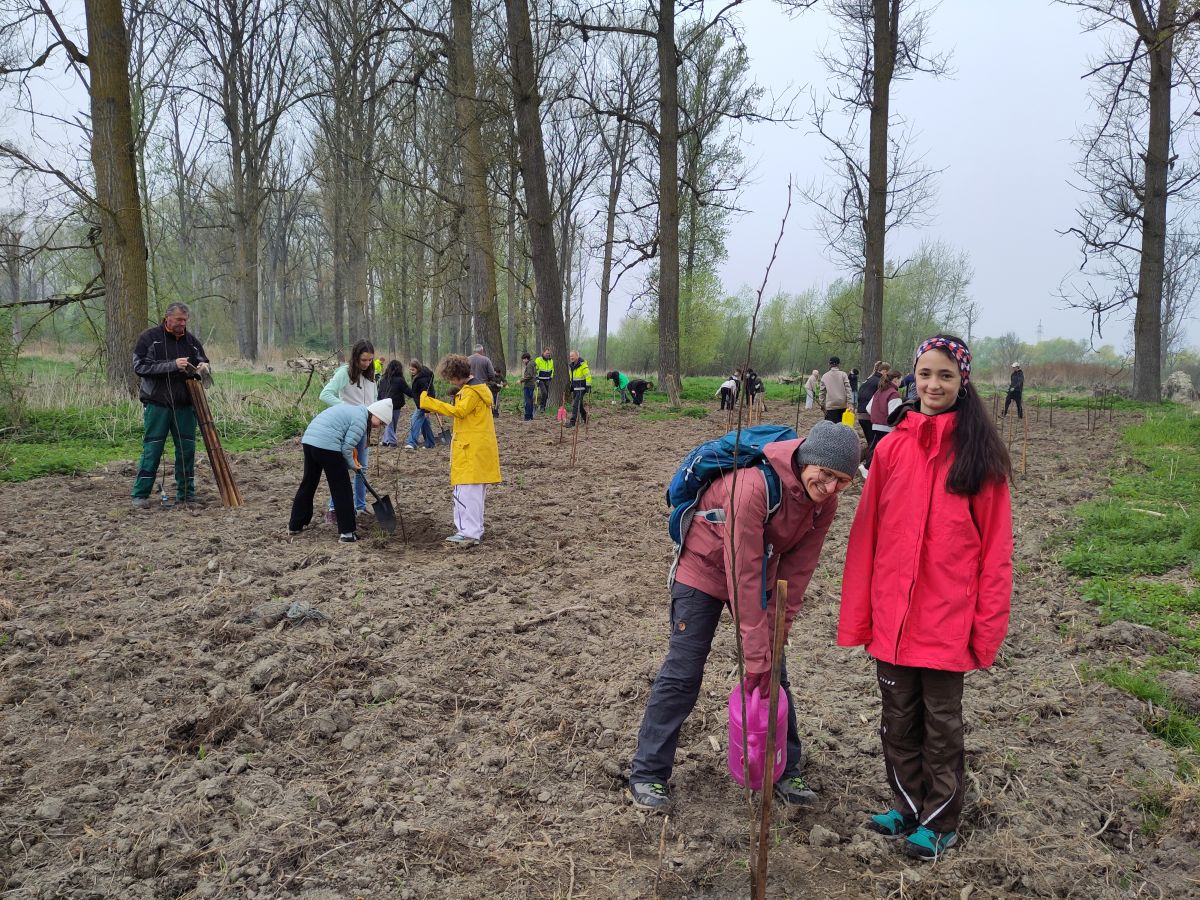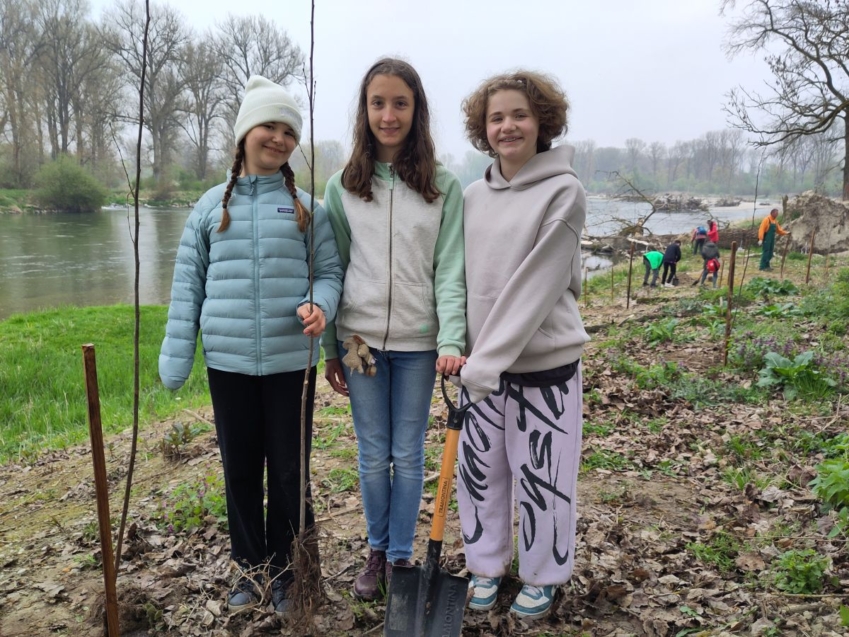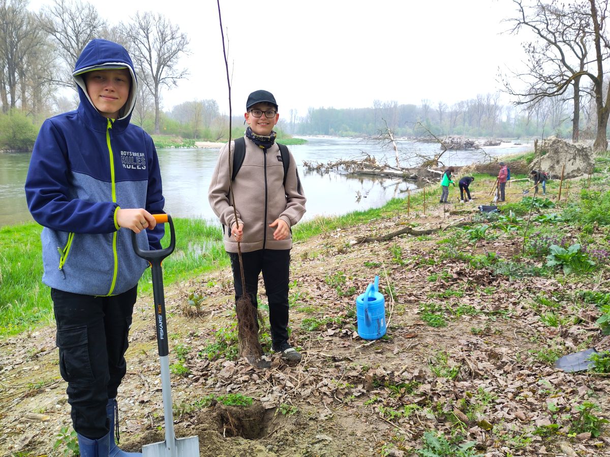 200 Flatterulmen gepflanzt – Umwelt-AG und 6b renaturieren die Hartholzaue am Angergries