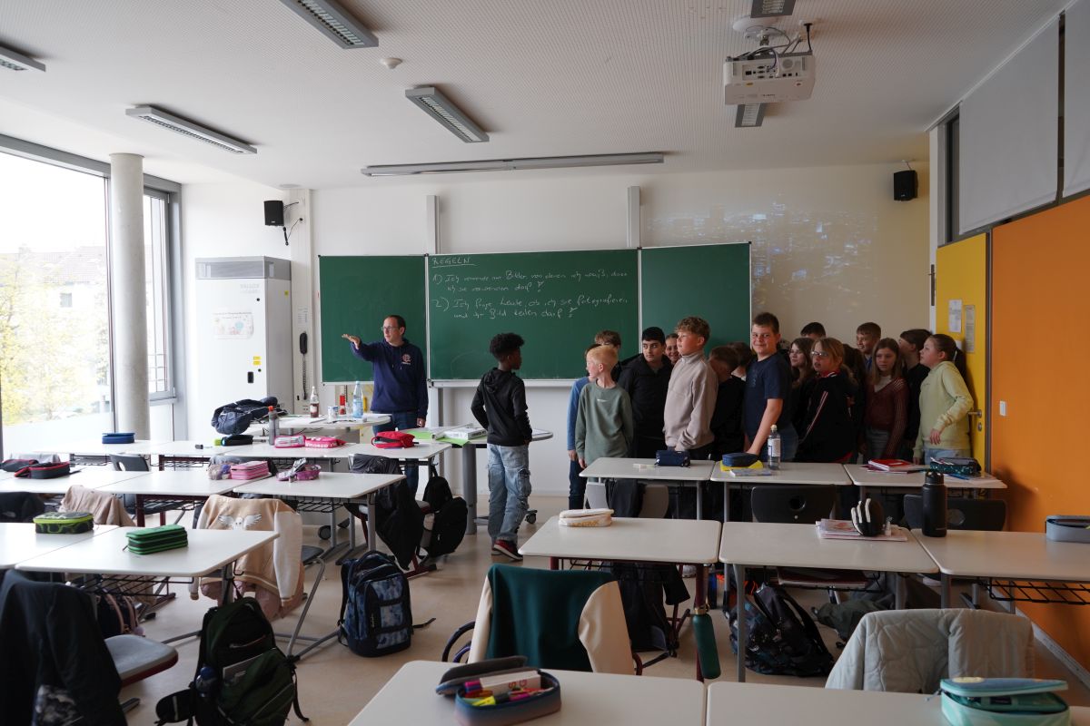 Zum Ende des Workshops positionierten sich die Schülerinnen und Schüler entsprechend ihrer Einschätzung zu verschiedenen Alltagssituationen in den Kategorien „erlaubt“, „nicht in Ordnung“, „weiß ich nicht“ und „nicht erlaubt, also strafbar“. Dabei zeigte sich ein insgesamt gut ausgeprägter moralischer Kompass: Die Klassen erkannten unter anderem, dass es bei Beleidigungen oft Graubereiche zwischen „nicht in Ordnung“ und „nicht erlaubt“ gibt. Auch an dieser Stelle hob Herr Fischer erneut die Bedeutung eines respektvollen Umgangs miteinander hervor – sowohl im persönlichen als auch im digitalen Raum.