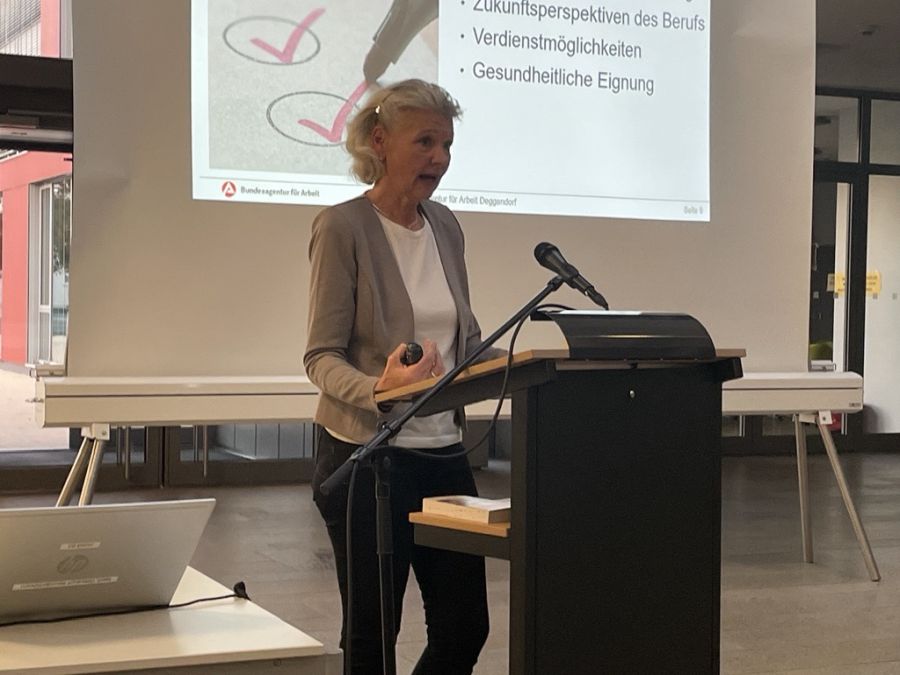 Den Abschluss bildete Martina Löffelmann von der IHK Deggendorf. Sie präsentierte die Aufgaben der IHK und thematisierte den aktuellen Fachkräftemangel. Dabei stellte sie die Berufe vor, für die die IHK zuständig ist, und betonte die hervorragenden Aufstiegsmöglichkeiten in dualen Ausbildungen. Besonders hervorgehoben wurde der Besuch der IHK Ausbildungsscouts am 16.12. an der Realschule sowie die nützliche Broschüre „Fit für Job“.