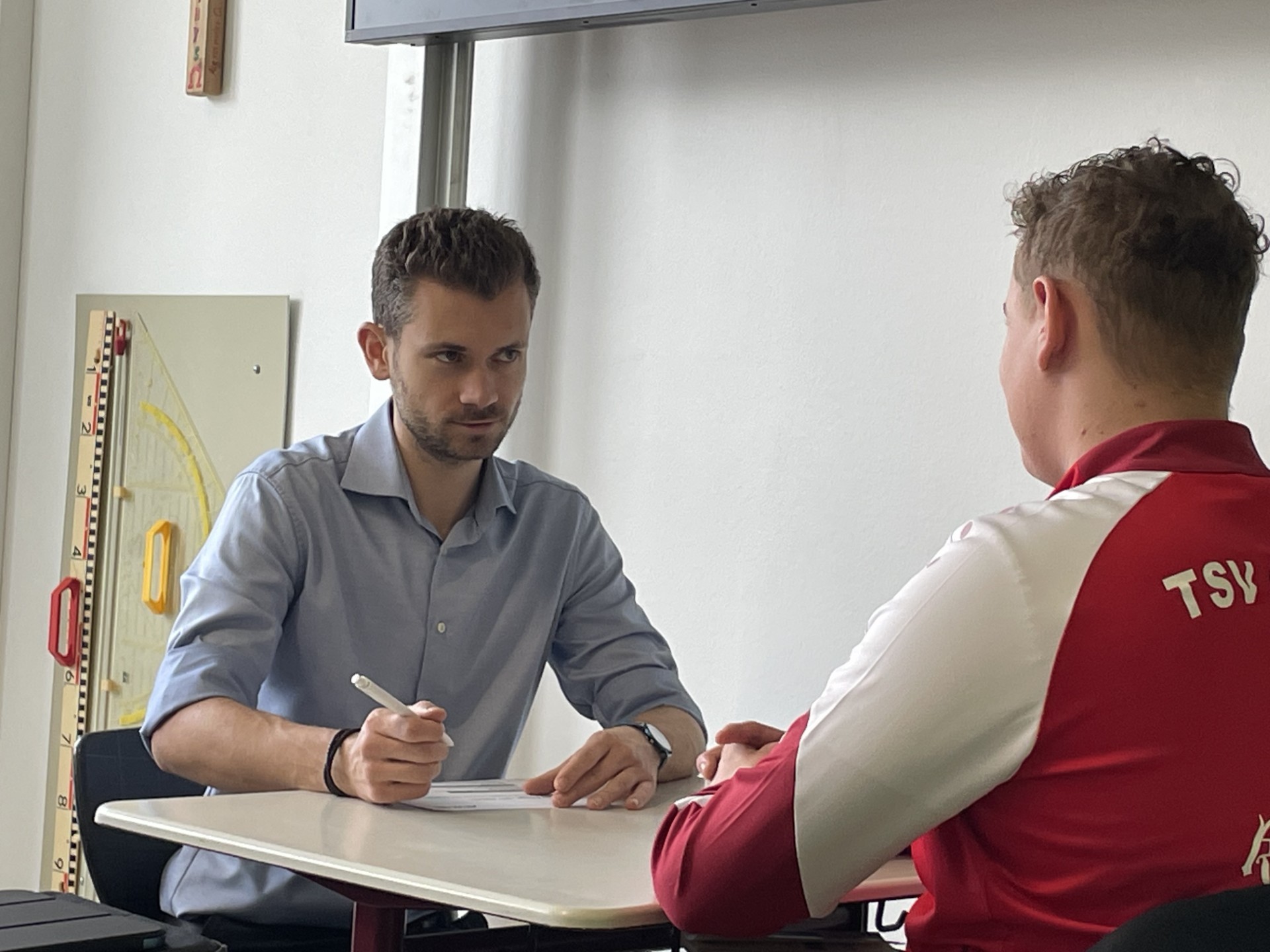 Besonders spannend wurde es bei den anschließenden Simulationen: Schülerinnen und Schüler schlüpften in die Rolle von Bewerbern und stellten sich in fiktiven Gesprächen Herrn Geiger, der den Part des Personalchefs übernahm. In den Feedbackrunden bewerteten die Mitschüler die Auftritte, hoben Stärken hervor und gaben konstruktive Verbesserungsvorschläge für ein souveränes Auftreten.