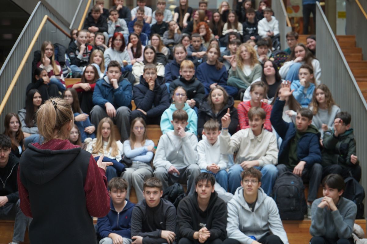 Besonders beeindruckend: Als Freiwillige standen Schülerinnen und Schüler auf der Bühne für demokratische Werte, Toleranz und Akzeptanz Andersdenkender ein. WOW! Auch in der anschließenden Diskussionsrunde zeigten unsere Schülerinnen und Schüler erstaunliche Reife und Empathie. Mit solchen jungen Leuten dürfen wir positiv in die Zukunft blicken.