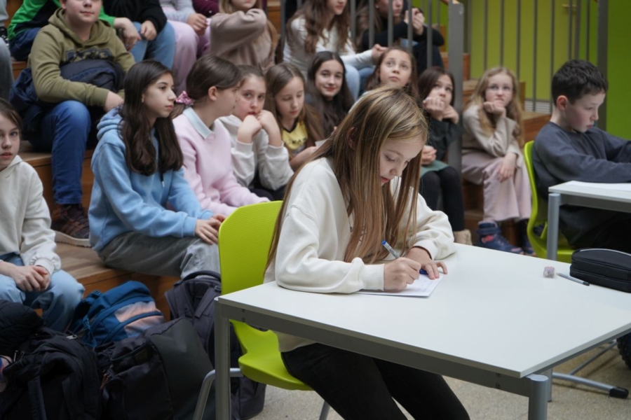 Zudem lernte der Quizmaster den Schülerinnen und Schülern Rechentricks zum Multiplizieren mit der Zahl 9. Neben Interviews mit den Finalisten zur Wettkampfvorbereitung oder Nervosität am Finaltag wurde auch das Publikum in die Show miteingebunden. Für Schülerinnen und Schüler der Deutschklasse wurde teilweise sogar in die Muttersprache übersetzt. In einem spannenden Endspurt konnte sich Marharyta Bashchuk als beste Rechnerin der fünften Klassen durchsetzen. Beeindruckend schnell und sicher rechnete nicht nur sie, sondern auch ihre Konkurrentinnen und Konkurrenten.