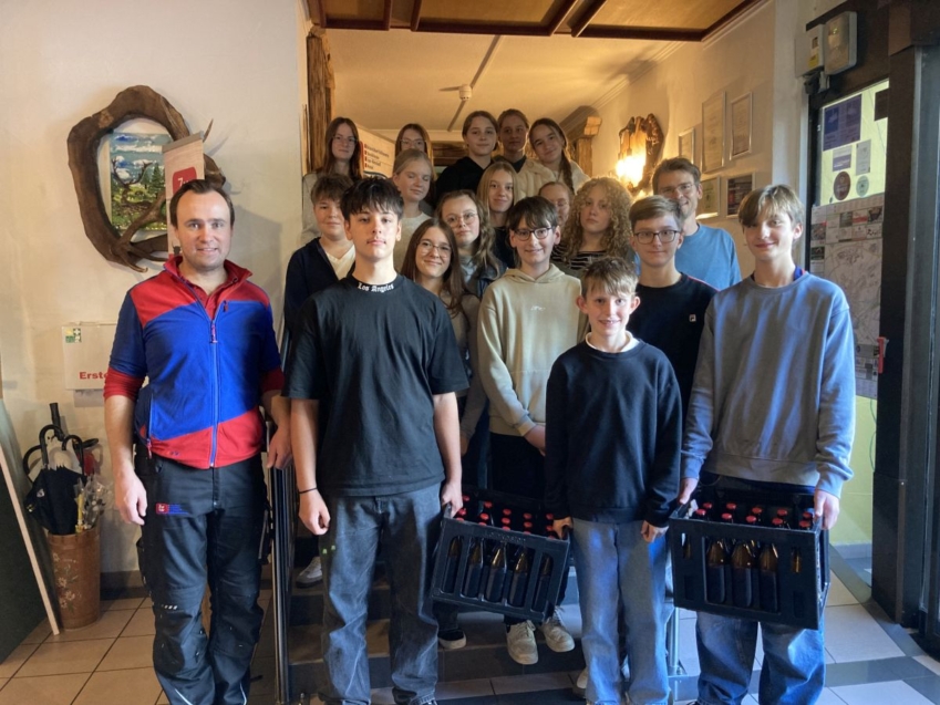 Während der Wartezeiten gestalteten die Schülerinnen und Schüler ihre eigenen Etiketten und nutzten die Gelegenheit, dem Braumeister viele Fragen zu stellen – die er geduldig und mit fundiertem Fachwissen beantwortete.