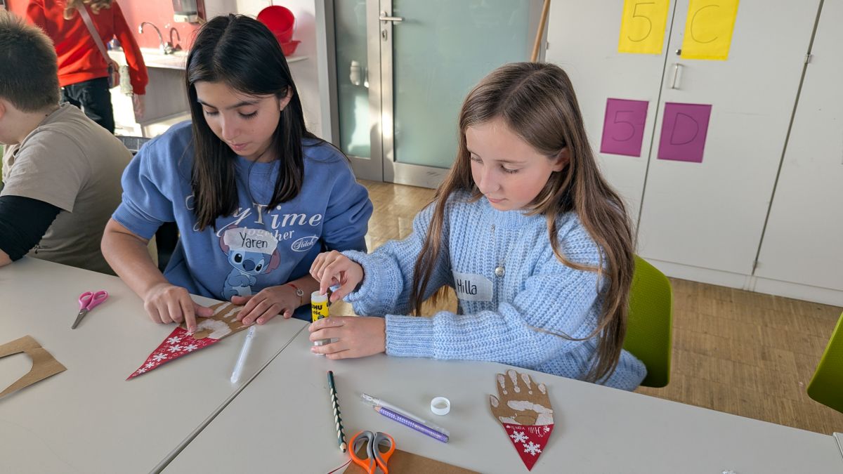 Nach fröhlichen Bewegungsspielen, die für viel Lachen und gute Stimmung sorgten, ging es in den Kunstsaal. Dort verwandelte sich der Raum in eine kleine Weihnachtswerkstatt: Es wurde geschnitten, geklebt und dekoriert, bis wunderschöne Kunstwerke entstanden. Natürlich fanden die liebevoll gestalteten Dekorationen sofort ihren Platz in den Klassenzimmern und sorgen nun für eine festliche Atmosphäre.